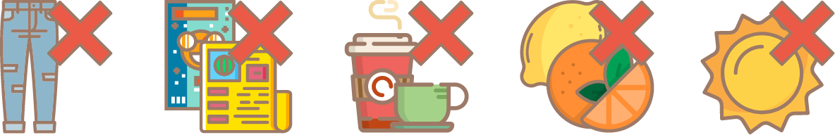 - BioThaneは色移りがしやすいため、衣服(ジーンズ、レギンスなど)、食品(コーヒー、果汁など)、印刷のインクなど色が移りやすい製品の傍には置かないで下さい。