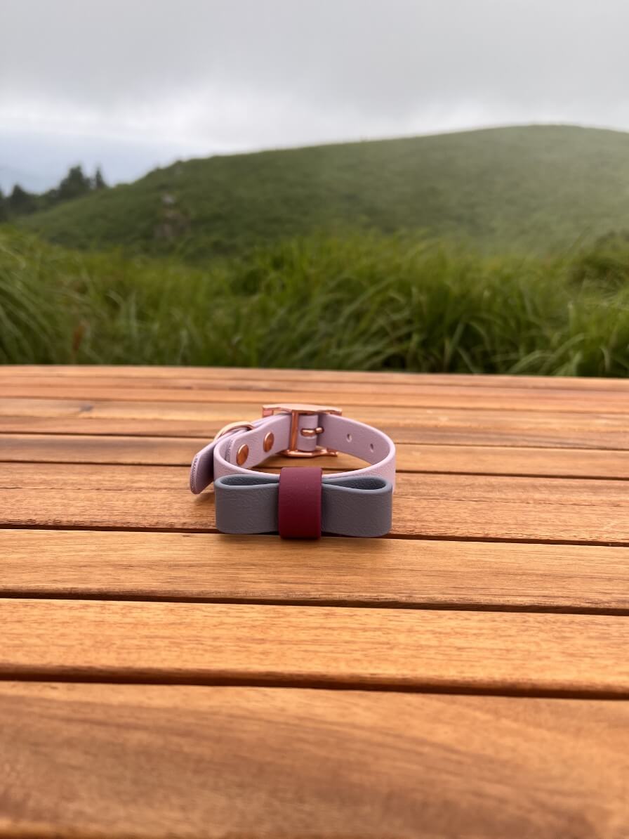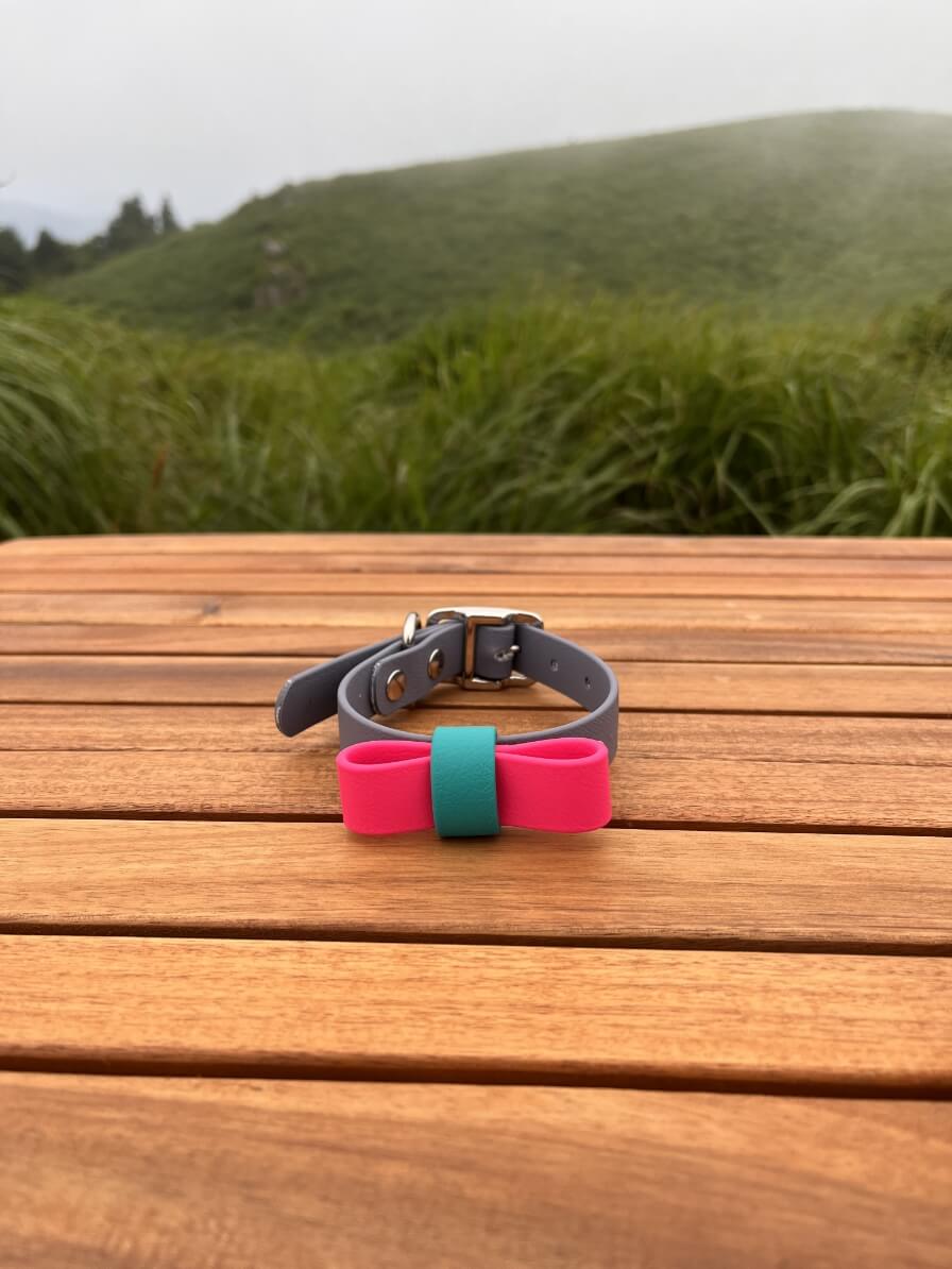 Biothaneのリボンがついた首輪です。